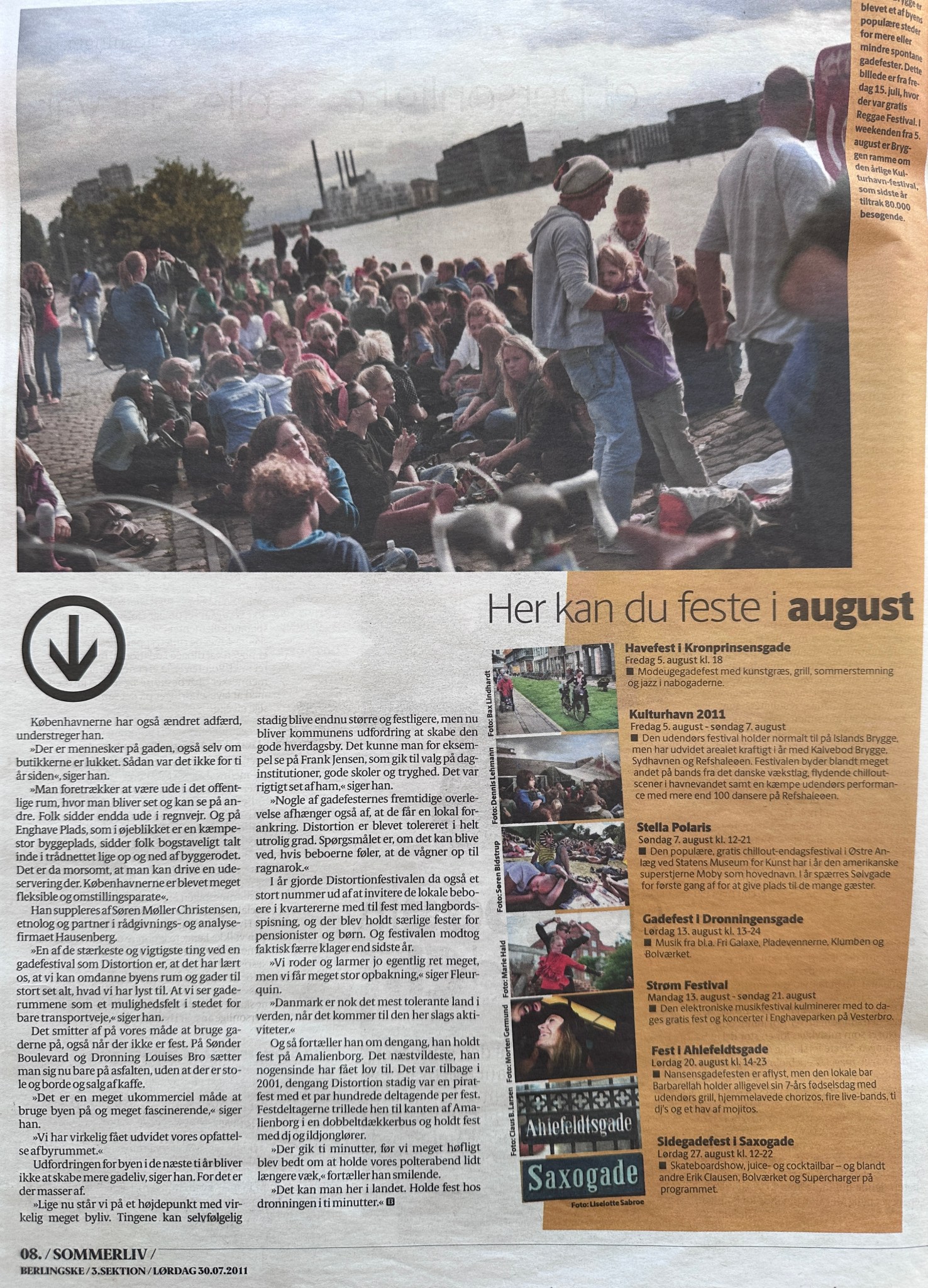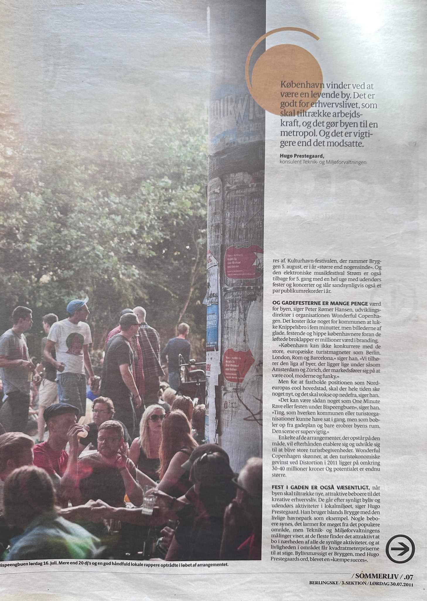 [….]Gadefesterne er mange penge værd for byen, siger Peter Rømer Hansen, udviklingsdirektør i organisationen Wonderful Copenhagen. Det koster ikke noget for kommunen at lukke Knippelsbro i fem minutter, men billederne af glade, festende og hippe københavnere foran de løftede broklapper er millioner værd i branding.