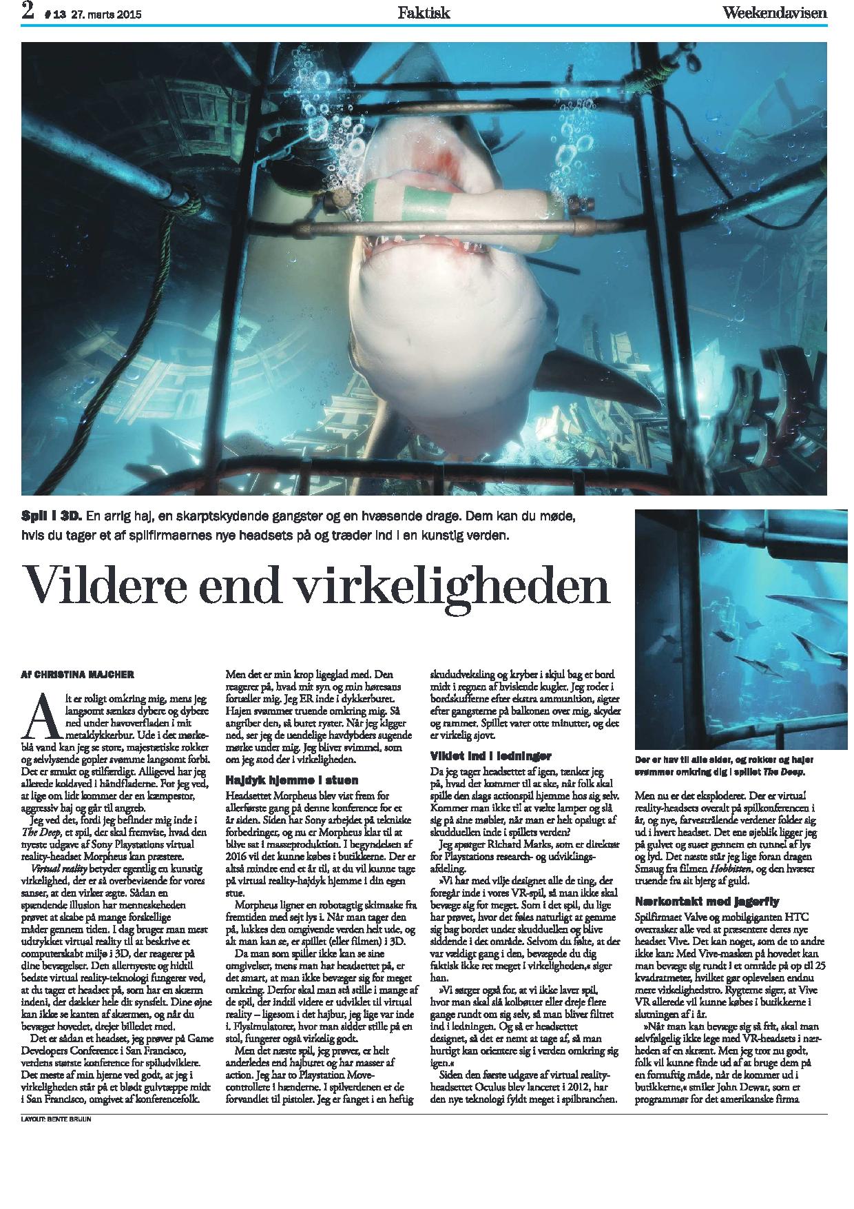 Men inden jeg fortaber mig i de mere bevidsthedsudvidende aspekter (det kommer, det kommer), er jeg mere lavpraktisk i Weekendavisens Faktisk-sektion i dag: Hvad sker der, når den her teknologi kommer hjem i folks stuer (og det gør den meget snart)? Kommer vi til at slå os og vælte alle møblerne i opslugt begejstring? Jeg spurgte, og fik interessante svar.